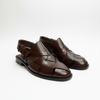 Transform your traditional attire with our Mehroon Cross Leather Peshawari Chappal, crafted from pure leather for unmatched durability and a refined finish. Featuring breathable inner leather and durable leather straps, it ensures all-day comfort and a secure fit. Perfectly paired with sherwanis, suits, or ethnic kurtas, this chappal combines classic elegance with lightweight rubber sole flexibility for effortless style and ease of movement.